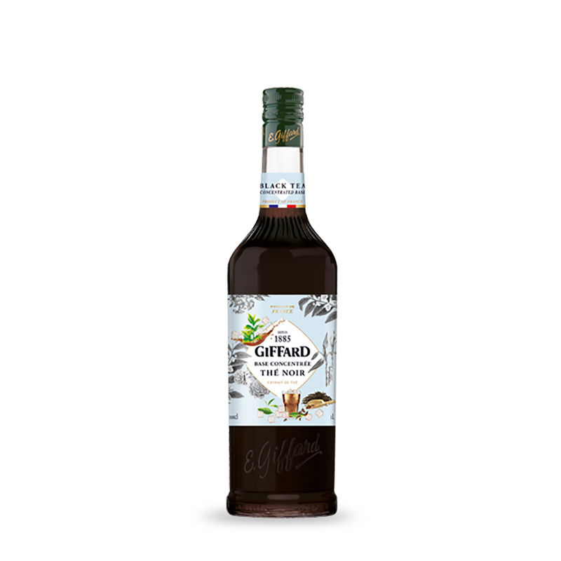 Сироп Giffard Чорний чай концентрат від популярного французького виробника – це продукт преміум-якості з унікальними смаковими та ароматичними властивостями. Підсолоджувач має насичений коричнево-червоний (прозорий) колір і в’язку, досить щільну консистенцію, завдяки якій він ідеально підходить для шаруватих коктейлів.